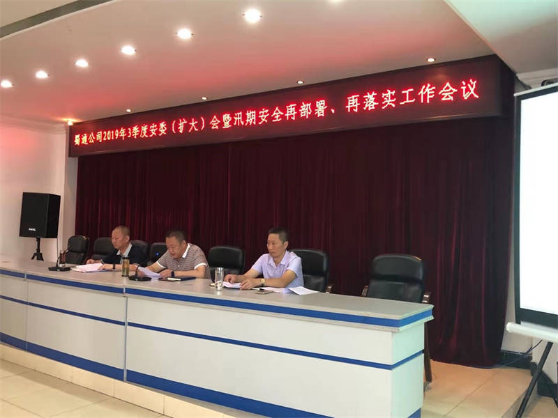 2019年7月23日,蜀通公司黨委副書記、總經(jīng)理、安委會主任余輝在公司機(jī)關(guān)會議室主持召開了2019年三季度安委(擴(kuò)大)會暨汛期安全工作再部署、再落實(shí)工作會議。公司安委會成員及各基層安全二、三責(zé)任人共計(jì)40人參加此次會議。