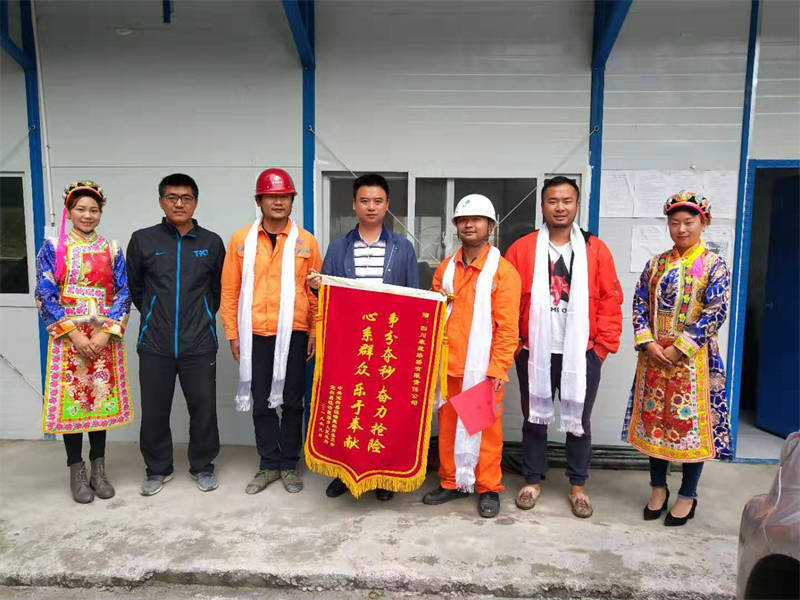 9月10日,中共寶興縣磽磧藏族鄉(xiāng)委員會、寶興縣磽磧藏族鄉(xiāng)人民政府敲鑼打鼓將一面“爭分奪秒,奮力搶險;心系群眾,樂于奉獻(xiàn)”的十六字錦旗和一封感謝信送到了雅安交建集團(tuán)路橋公司寶興駐地。表達(dá)了寶興人民對交建集團(tuán)在“8·22”特大洪災(zāi)抗洪搶險中為當(dāng)?shù)乩习傩兆鰧嵤隆⒔馕ky的感激之情。