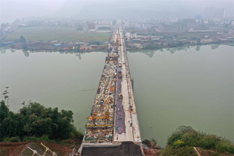11月10日,多營青衣江大橋全線貫通,初步具備通行條件。目前,橋面附屬設施、引道和路基等正有序推進,預計本月底完成左幅橋面、引道和路基瀝青鋪設。