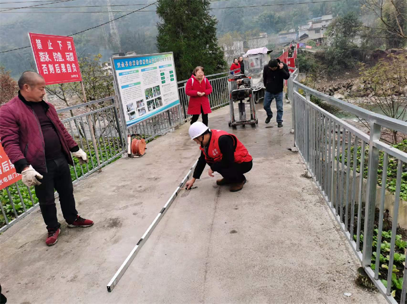 為深入推進(jìn)黨史學(xué)習(xí)教育“我為群眾辦實(shí)事”實(shí)踐活動(dòng),11月26日,交建集團(tuán)佳岳公司組織4名檢測人員對天全縣小河鄉(xiāng)境內(nèi)2條農(nóng)村公路,1座鐵索橋開展混凝土路面厚度、橋墩加固強(qiáng)度等檢測,全面把控道路質(zhì)量,提高群眾通行安全保障。