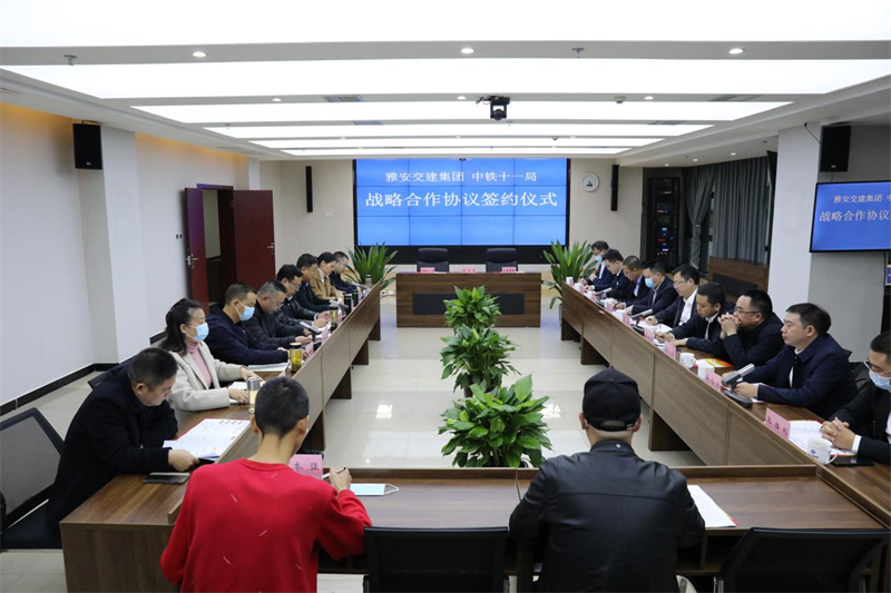 11月2日,雅安交建集團(tuán)與中鐵十一局集團(tuán)有限公司簽署戰(zhàn)略合作協(xié)議。集團(tuán)黨委書記、董事長(zhǎng)漆家華,中鐵十一局集團(tuán)公司四川區(qū)域總經(jīng)理呂 涵參加并見證簽約儀式,集團(tuán)黨委副書記、總經(jīng)理羅倫全與中鐵十一局集團(tuán)四川區(qū)域副總經(jīng)理吳江偉代表雙方簽約。集團(tuán)領(lǐng)導(dǎo)張萬(wàn)清、張勝利、丁春、陸鷗、程學(xué)強(qiáng),中鐵十一局四川區(qū)域副總經(jīng)理田景發(fā)以及四公司、五公司相關(guān)負(fù)責(zé)人見證簽約和座談交流。