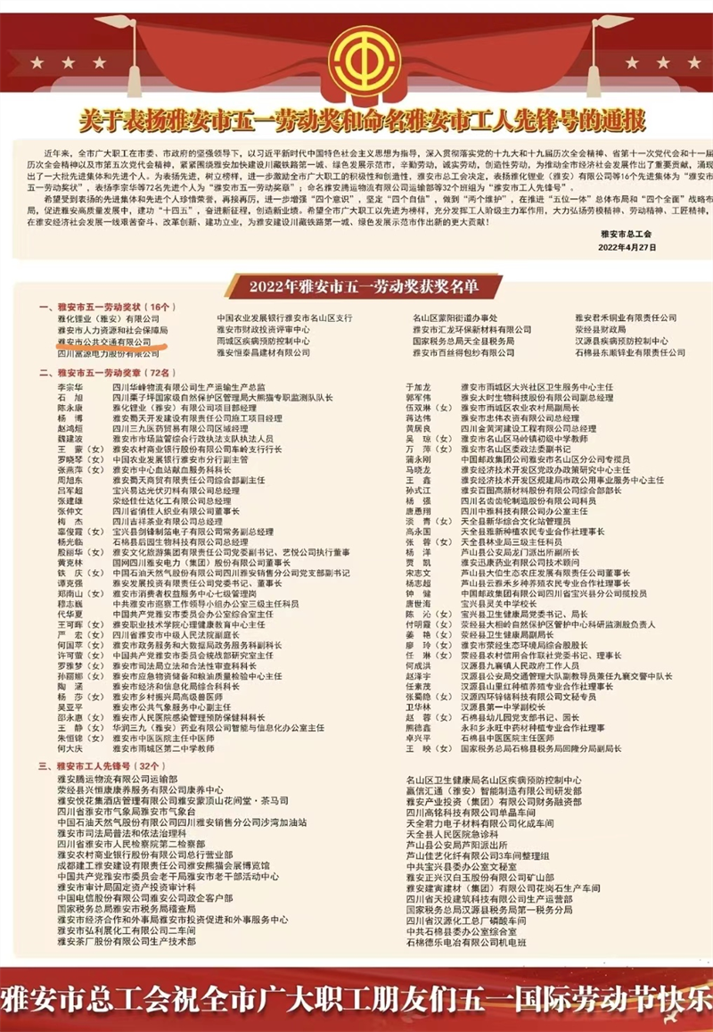 4月28日,市總工會召開2022年雅安市慶!拔逡弧眹H勞動節(jié)暨表揚(yáng)大會,交建集團(tuán)雅安市公共交通有限公司榮獲全市五一勞動獎狀殊榮。