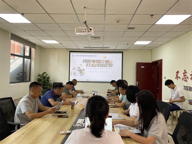 為進(jìn)一步營(yíng)造“全民反詐”全動(dòng)員、全知曉的濃厚氛圍,交建項(xiàng)目管理公司積極開展“打擊治理電信網(wǎng)絡(luò)詐騙犯罪集中宣傳月”活動(dòng)。6月7日,組織全體員工進(jìn)行了反詐警示教育和防范宣傳培訓(xùn),發(fā)放宣傳資料30余份。