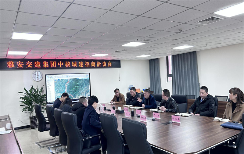 中核城建公司副總經(jīng)理兼市場開發(fā)部經(jīng)理王強、總經(jīng)理助理楊磊,雅安交建集團副總經(jīng)理丁春,以及雙方相關(guān)部門負責人參洽談。