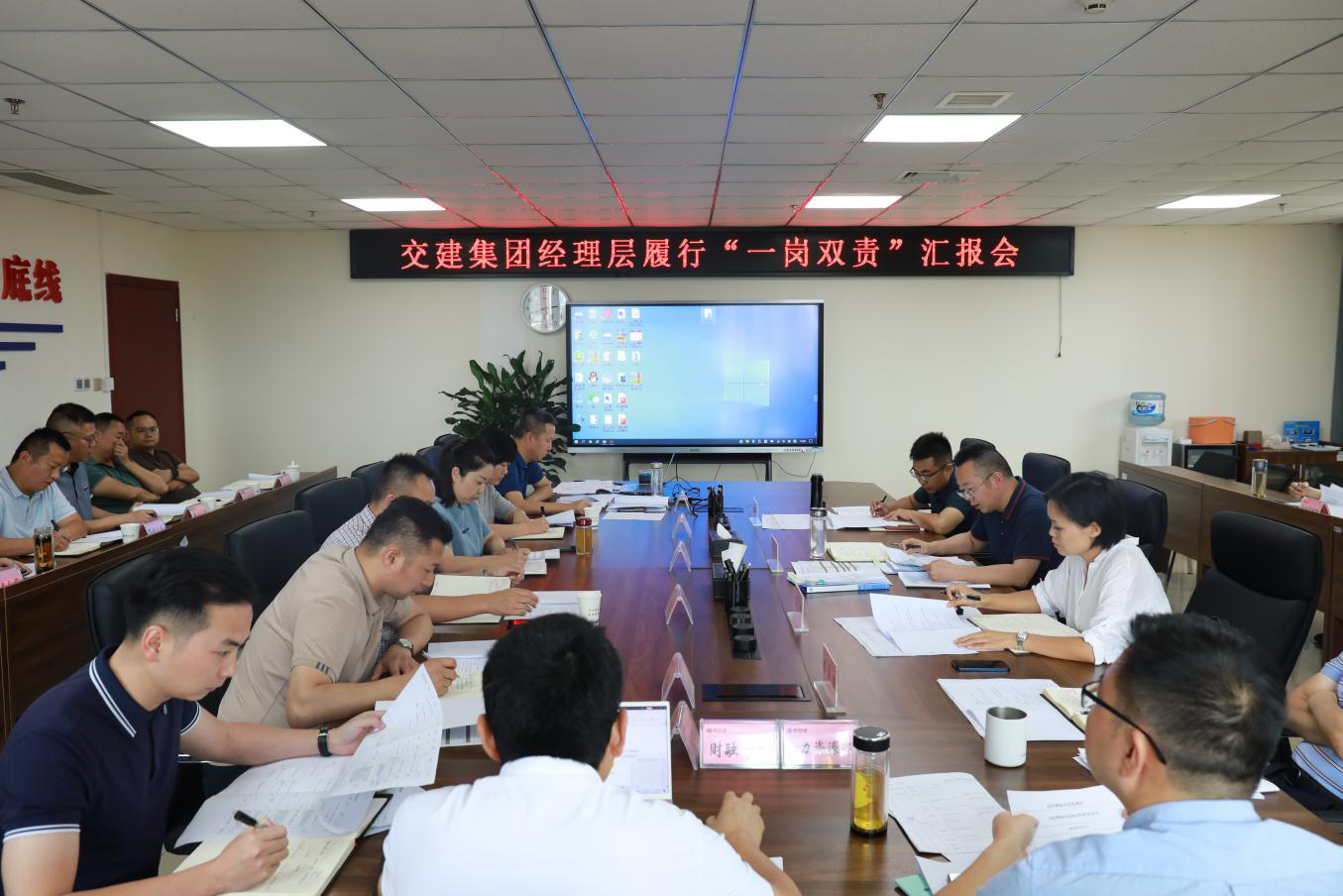 為進一步增強集團經(jīng)營班子成員自覺履行“一崗雙責(zé)”責(zé)任意識,近日,交建集團召開經(jīng)營班子成員履行“一崗雙責(zé)”情況專題匯報會,傳達學(xué)習(xí)市委五屆三次全會精神,班子成員結(jié)合分管任務(wù)逐一匯報履行全面從嚴(yán)治黨、黨風(fēng)廉潔建設(shè)、安全環(huán)保“一崗雙責(zé)”工作情況及下步工作打算。