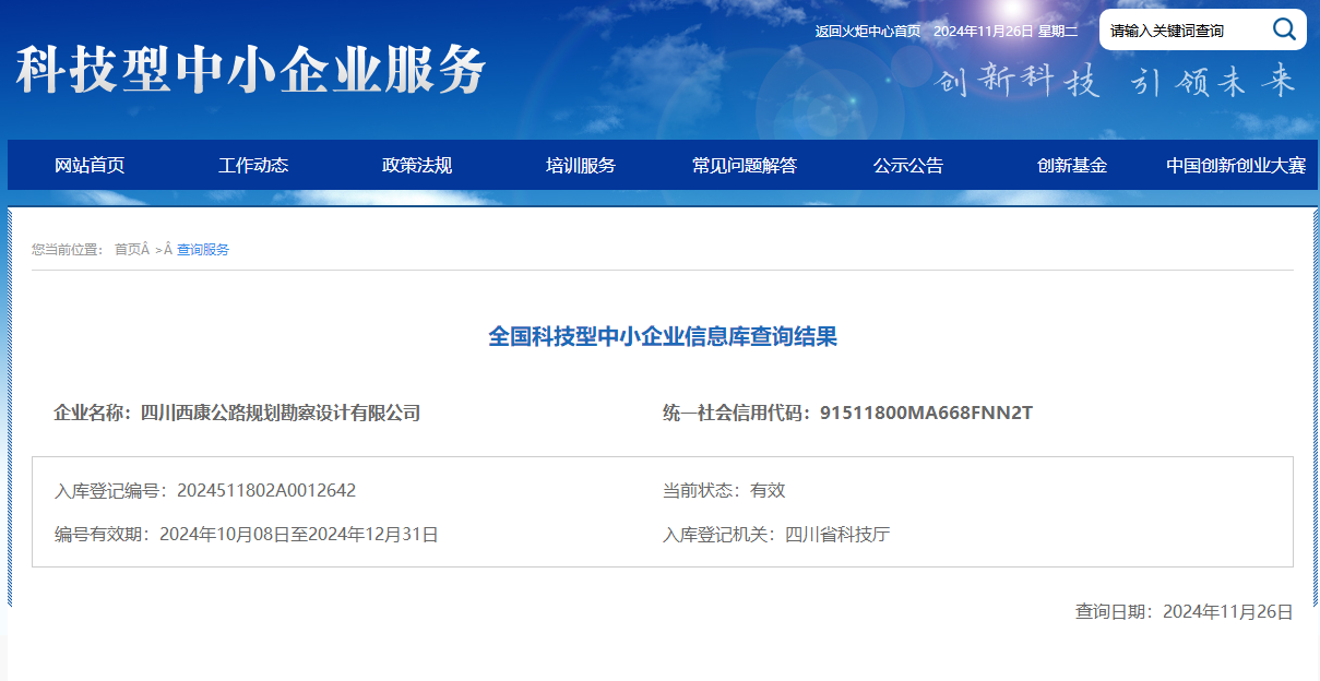 雅安交建集團(tuán)設(shè)計(jì)公司 獲“國(guó)家級(jí)科技型中小企業(yè)”稱號(hào)