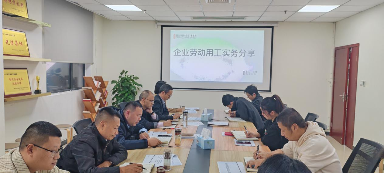 為進一步加強勞動用工實務操作,提高解決勞動爭議的能力和技巧,10月31日,項管公司邀請成都國浩律師事務所王慧律師開展了勞動用工實務培訓活動,公司領導班子、中層及相關經辦人員約20人參加培訓。
