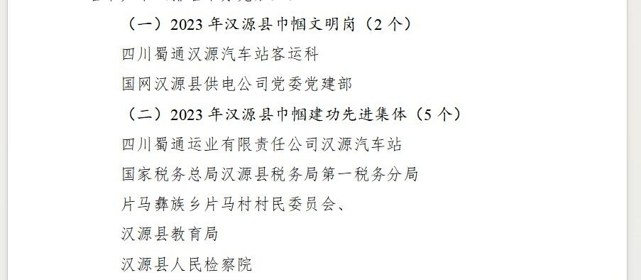 喜報!雅安交建集團蜀通漢源汽車站獲 “2023年漢源縣巾幗建工先進集體