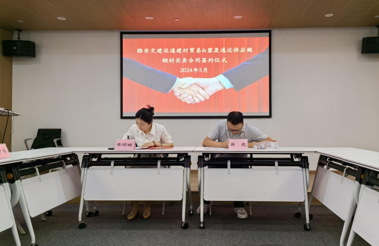 近日,雅安交建集團(tuán)運(yùn)通建材貿(mào)易有限公司(以下簡(jiǎn)稱(chēng):建材公司)與四川蓉晟通達(dá)供應(yīng)鏈管理有限公司(以下簡(jiǎn)稱(chēng):蓉晟通達(dá)公司)在成都舉行鋼材買(mǎi)賣(mài)合同簽約儀式,標(biāo)志著建材公司順利完成2024年度首個(gè)市外貿(mào)易業(yè)務(wù)的簽訂工作,且合同金額超2300萬(wàn)元。