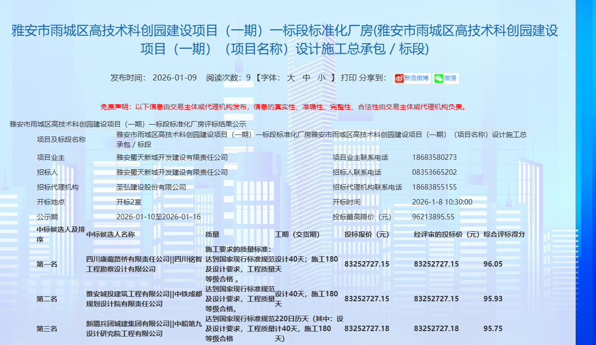 蓄勢突破,奮楫開新?挡芈窐蚬境晒孬@雅安市雨城區(qū)高技術(shù)科創(chuàng)園建設(shè)項目(一期)一標(biāo)段標(biāo)準(zhǔn)化廠房項目,中標(biāo)金額8325.27萬元,為公司2026年發(fā)展強(qiáng)勢開篇,迎來馬年“開門紅”。
