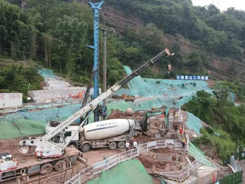 “咚咚咚……”在雨城區(qū)多營(yíng)鎮(zhèn)五營(yíng)村熊家山二號(hào)隧道出口端空地上,旋挖鉆機(jī)開(kāi)足馬力,朝著地層深處掘進(jìn),不斷發(fā)出富有節(jié)奏的聲響!懊總(gè)樁基有二十多米深。”國(guó)道318線名山區(qū)黑竹(成都界)至雨城區(qū)多營(yíng)段改建工程項(xiàng)目副經(jīng)理林洲,每天都要到各施工點(diǎn)位查看進(jìn)度。他說(shuō),熊家山二號(hào)隧道附近山體為順層帶,易產(chǎn)生滑坡,進(jìn)洞施工前需要先在洞外打抗滑樁,以確保施工安全,目前還在開(kāi)展剩下3根抗滑樁的施工。