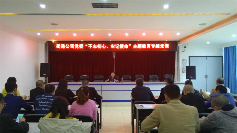 10月24日,公司黨委“不忘初心、牢記使命”主題教育專(zhuān)題黨課在蜀通公司機(jī)關(guān)大會(huì)議室舉行,公司黨委書(shū)記吳誠(chéng)向蜀通公司、公交公司黨員講專(zhuān)題黨課。公司黨支部書(shū)記、和黨員代表共35人參加。