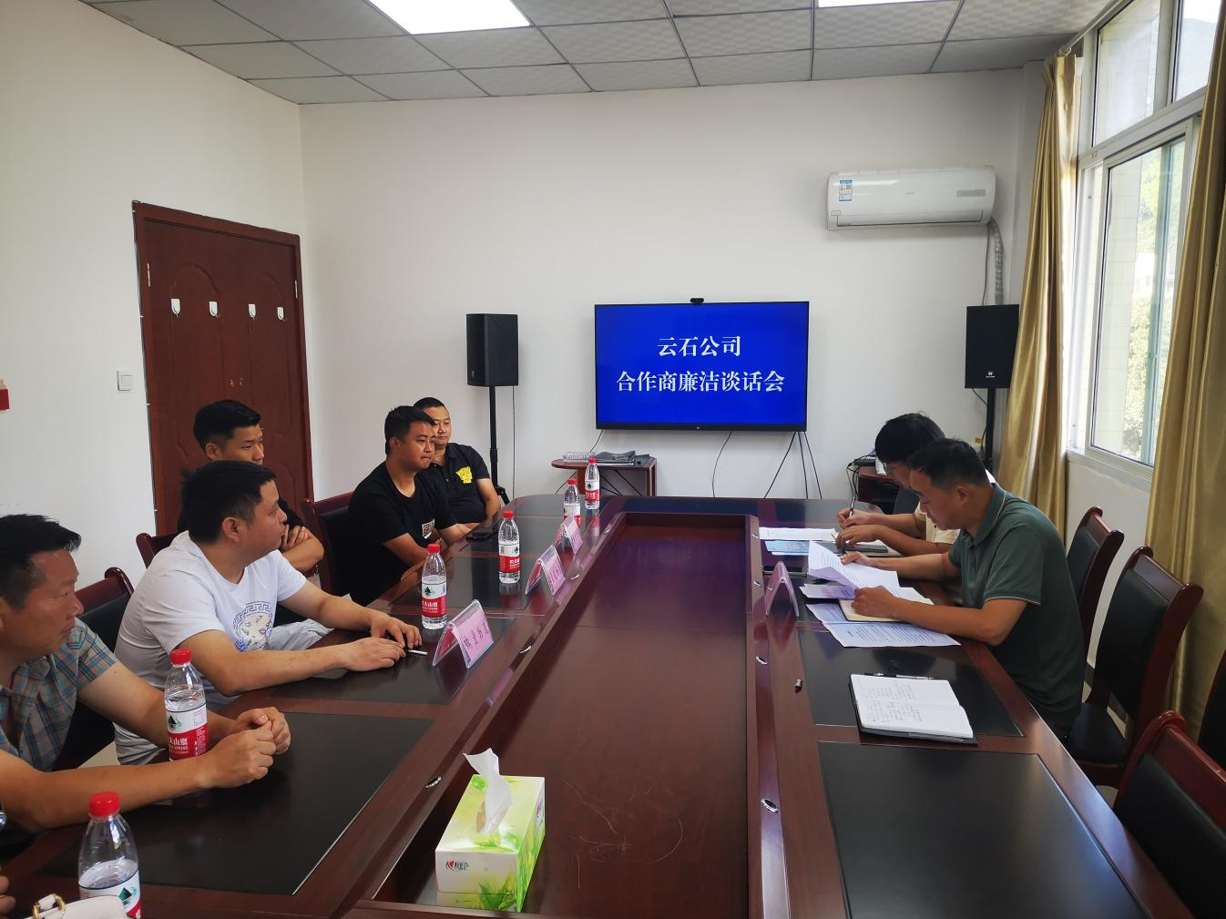 為營造風清氣正、崇尚廉潔的合作氛圍,7月1日上午,云石公司總經理趙強主持召開合作商廉潔座談會。公司班子成員、業(yè)務部門負責人、紀檢聯(lián)絡員以及新采購的3家合作商代表參加座談。