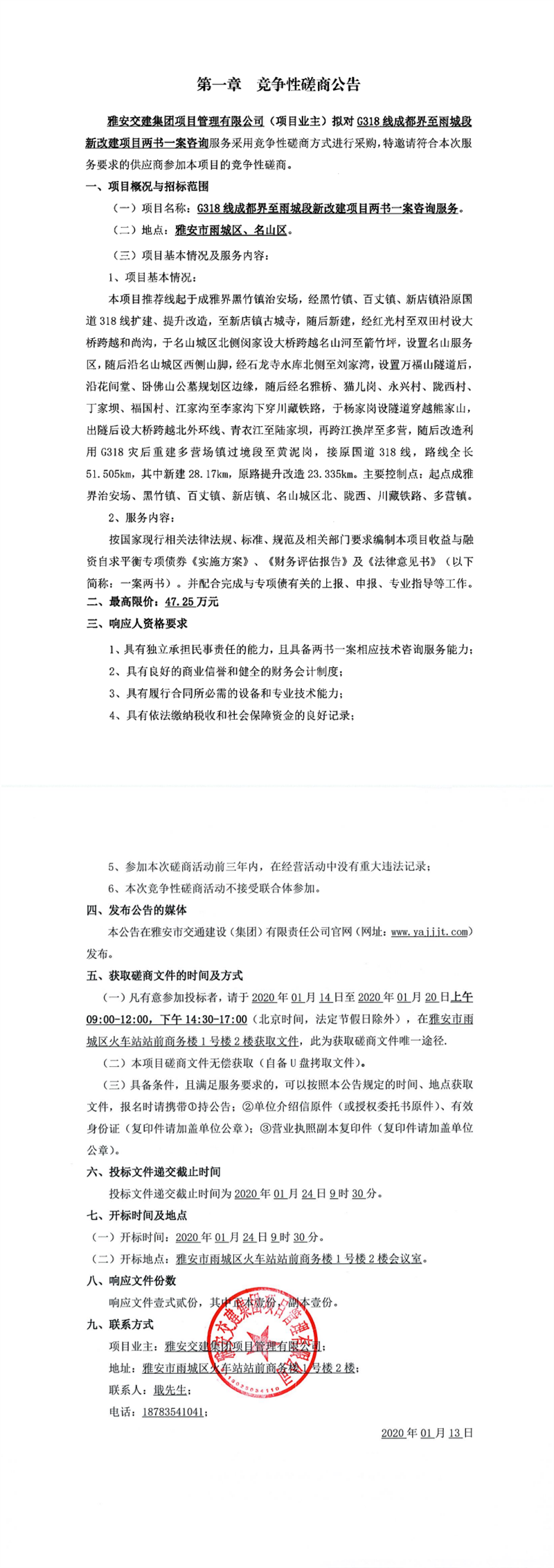 雅安交建集團項目管理有限公司G318線成都界至雨城段新改建項目兩書一案咨詢服務(wù)