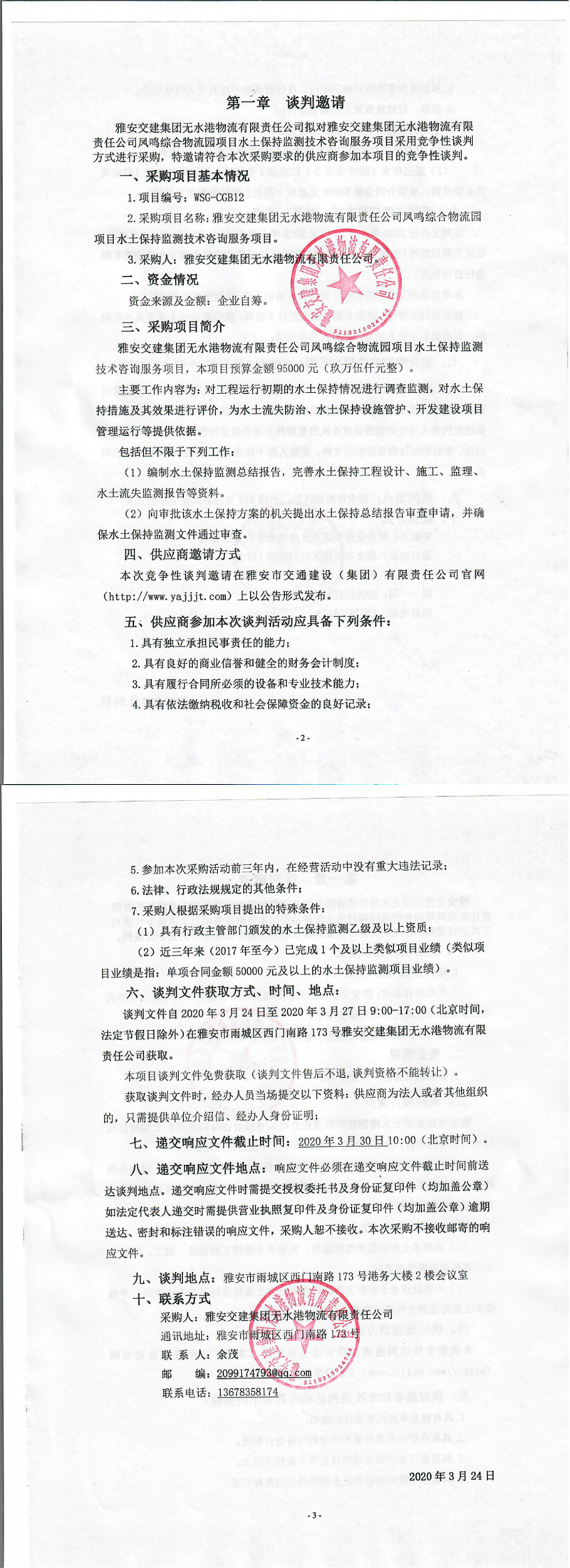 雅安交建集團無水港物流有限責任公司鳳鳴綜合物流園項目水土保持監(jiān)測技術咨詢服務項目競爭性談判公告