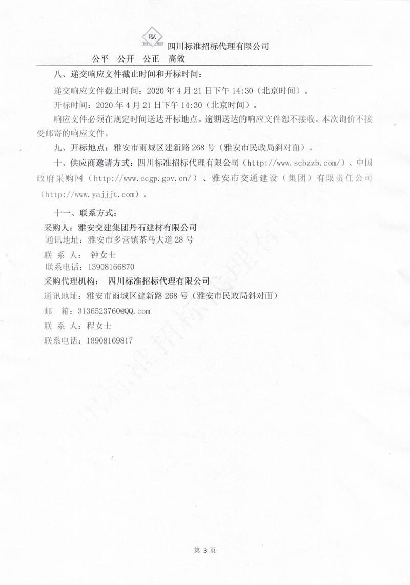雅安交建集團(tuán)丹石建材有限公司成雅快速通道一標(biāo)段砂石運(yùn)輸服務(wù)項目詢價公告