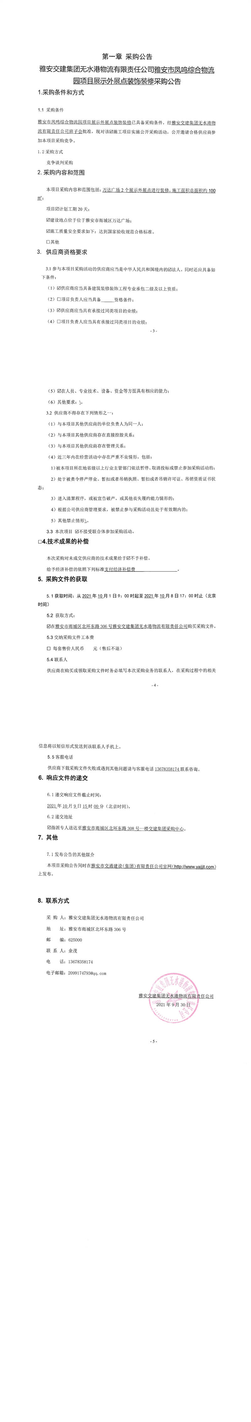 雅安交建集團(tuán)無水港物流有限責(zé)任公司雅安市鳳鳴綜合物流園項目展示外展點(diǎn)裝飾裝修采購公告