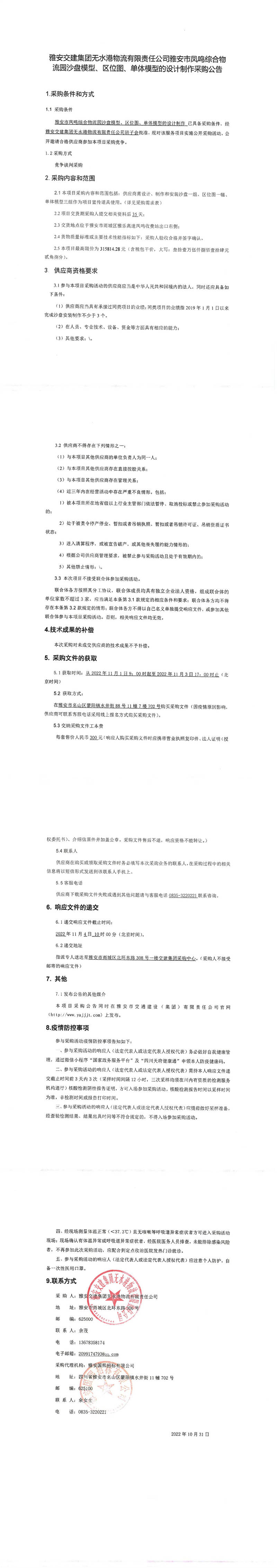 雅安交建集團無水港物流有限責任公司雅安市鳳鳴綜合物流園沙盤模型、區(qū)位圖、單體模型的設計制作采購公告