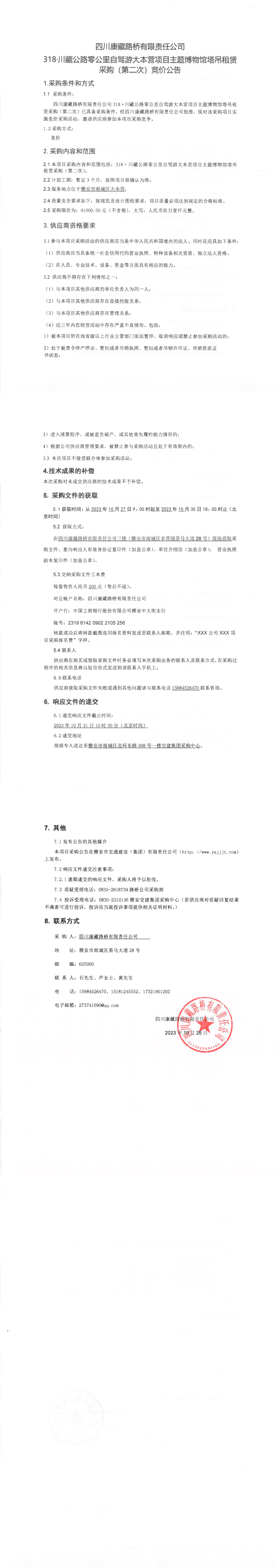 四川康藏路橋有限責(zé)任公司318·川藏公路零公里自駕游大本營(yíng)項(xiàng)目主題博物館塔吊租賃(第二次)采購(gòu)競(jìng)價(jià)公告