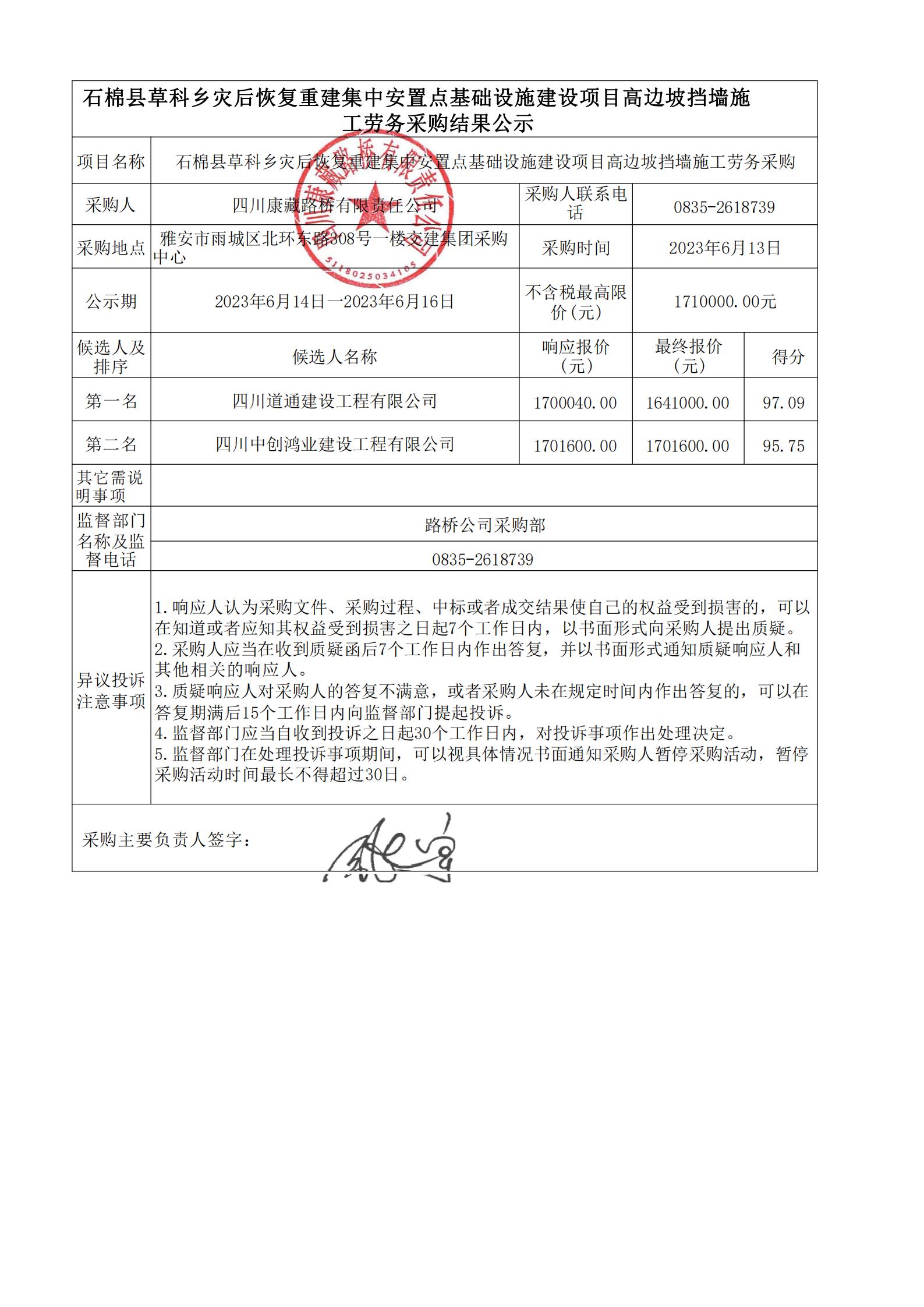 四川康藏路橋有限責(zé)任公司石棉縣草科鄉(xiāng)災(zāi)后恢復(fù)重建集中安置點(diǎn)基礎(chǔ)設(shè)施建設(shè)項(xiàng)目高邊坡?lián)鯄κ┕趧?wù)采購(gòu)結(jié)果公示