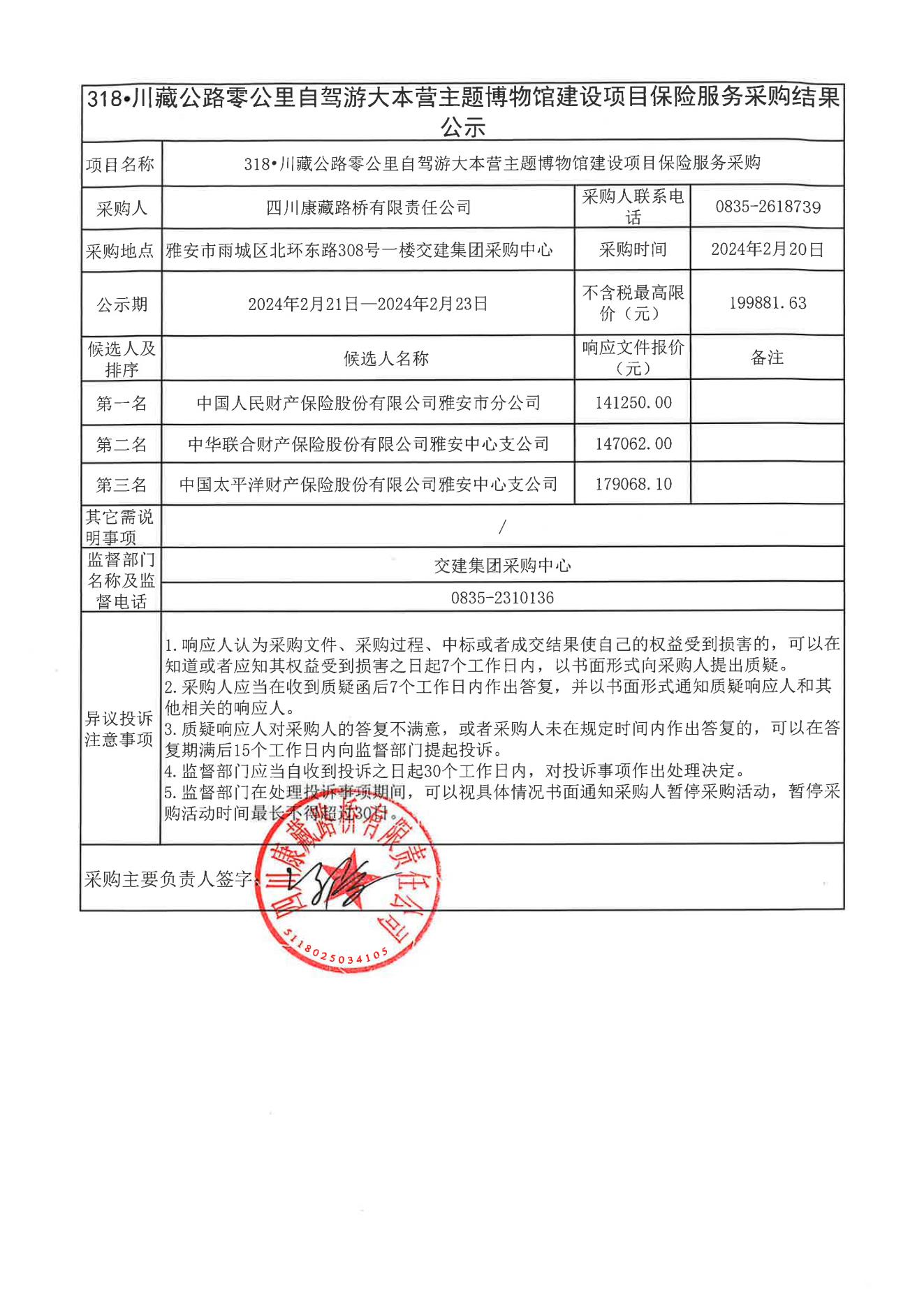 四川康藏路橋有限責(zé)任公司318•川藏公路零公里自駕游大本營(yíng)主題博物館建設(shè)項(xiàng)目保險(xiǎn)服務(wù)采購結(jié)果公示