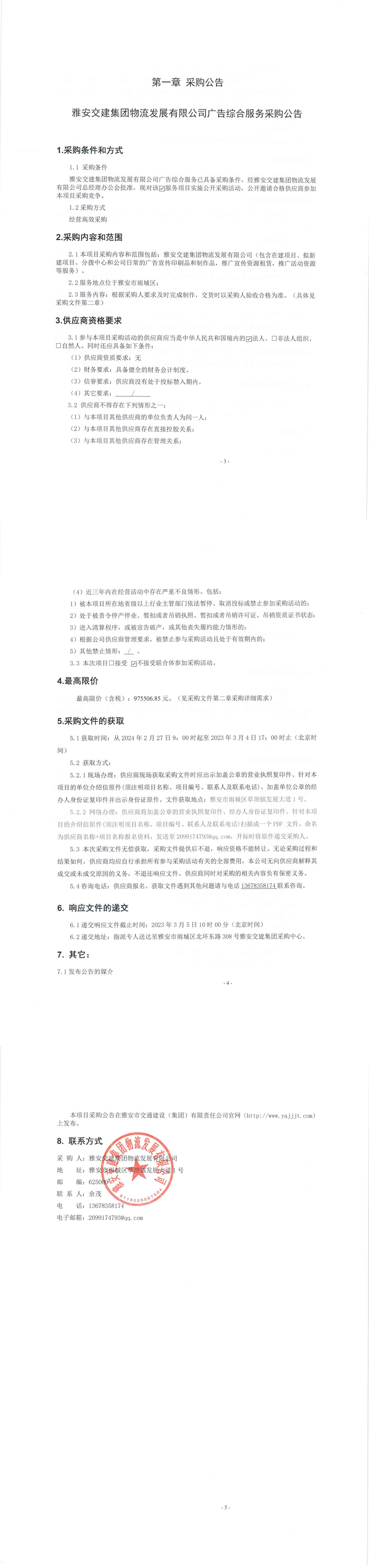 雅安交建集團(tuán)物流發(fā)展有限公司廣告綜合服務(wù)采購(gòu)公告