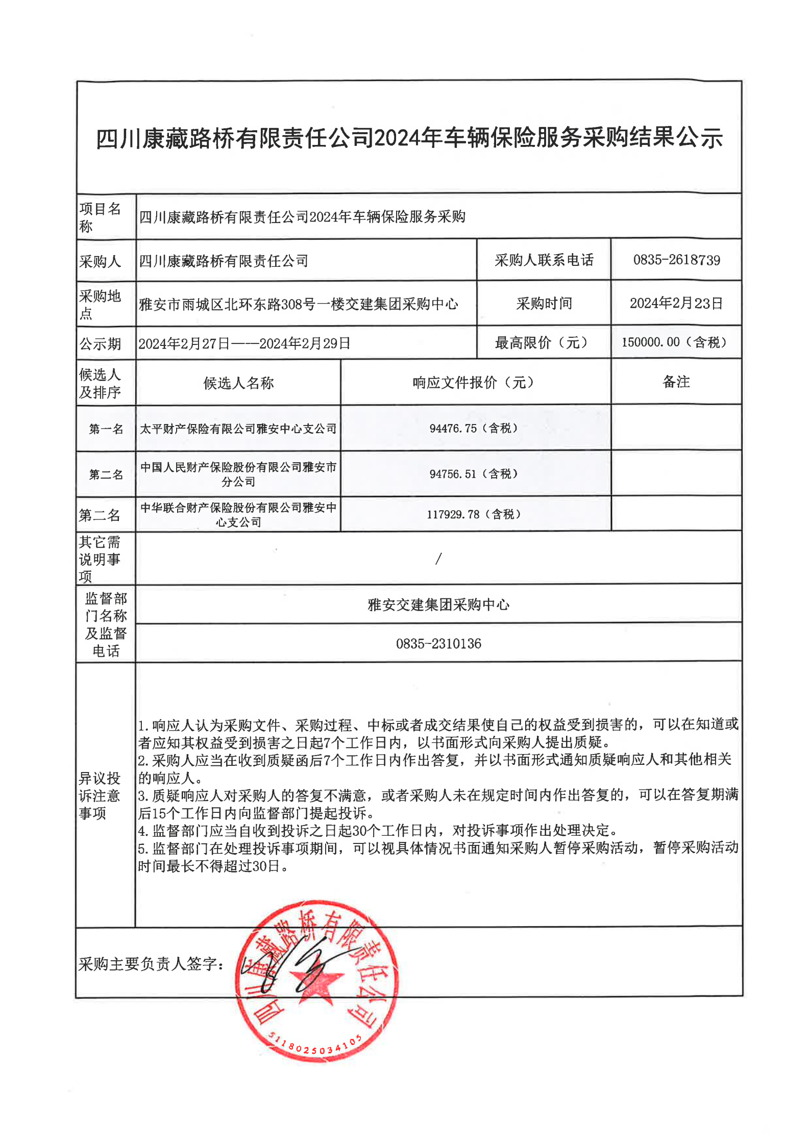 四川康藏路橋有限責(zé)任公司2024年車輛保險(xiǎn)服務(wù)采購結(jié)果公示