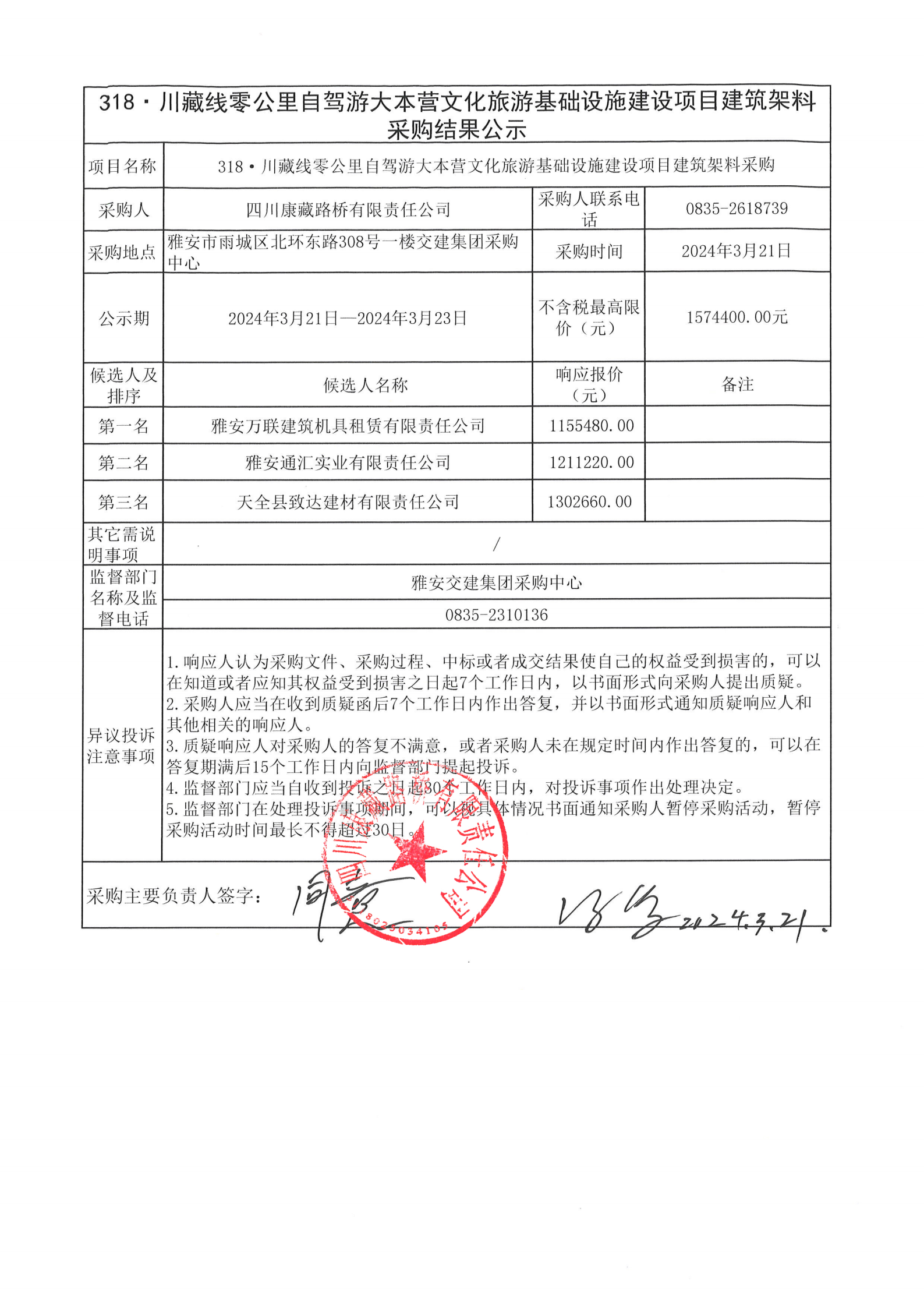 四川康藏路橋有限責(zé)任公司318·川藏線零公里自駕游大本營(yíng)文化旅游基礎(chǔ)設(shè)施建設(shè)項(xiàng)目建筑架料租賃采購(gòu)結(jié)果公示
