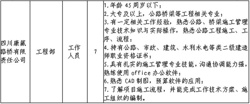 雅安交建集團關(guān)于公開招聘所屬子公司工作人員的公告(路橋公司)