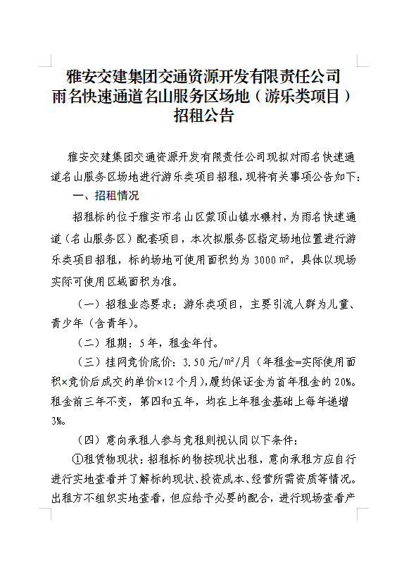 雅安交建集團(tuán)交通資源開發(fā)有限責(zé)任公司雨名快速通道名山服務(wù)區(qū)場地(游樂類項(xiàng)目)招租公告附件