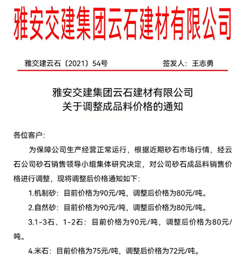 ÑŰ²½»½¨¼¯ˆF(tu¨¢n)ÔÆÊ¯¹«Ë¾êP(gu¨¡n)ÓÚÕ{(di¨¤o)Õû³ÉÆ·ÁÏäNÊÛƒr(ji¨¤)¸ñµÄ֪ͨ£¨2021.11.4£©