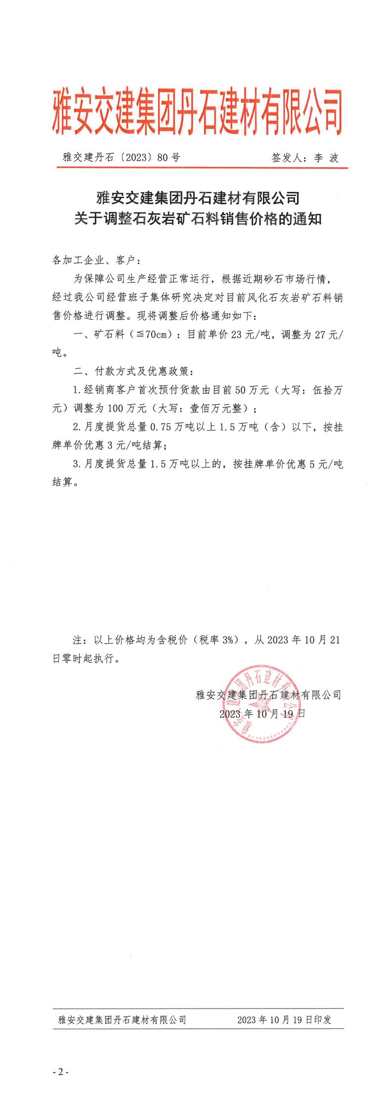 ÑŰ²½»½¨µ¤Ê¯¹«Ë¾êPÓÚʯ»Ò?gu¨©)rµVʯÁÏÕ{(di¨¤o)ƒrµÄ֪ͨ--2023.10.20